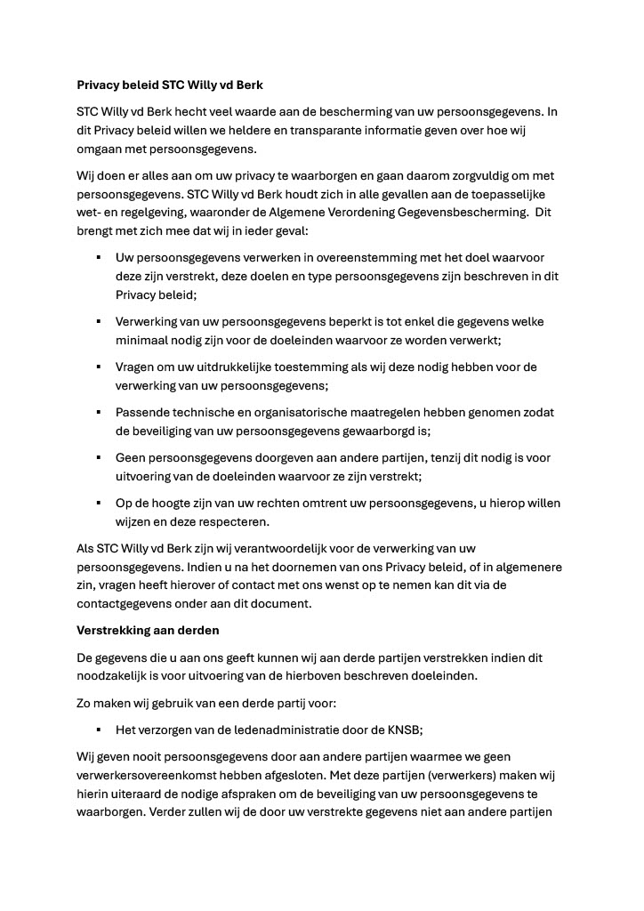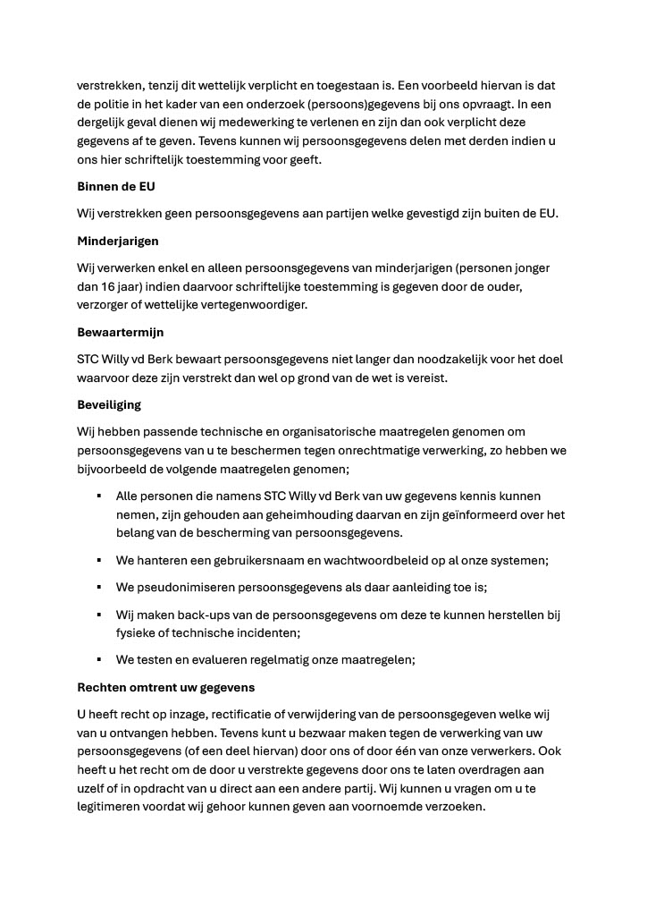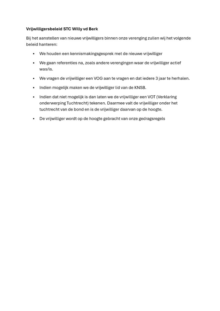 Gedragsregels, Privacy beleid, Vrijwilligersbeleid